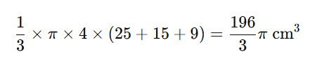 큰 원뿔의 부피에서 작은 원뿔의 부피를 뺀 값과 같습니다.