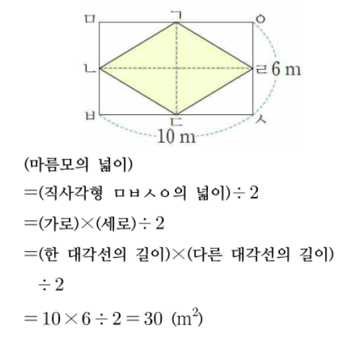 - 대각선 공식은 마름모에서만(또는 연습한 특정 도형) 쓰는 특별 공식입니다.