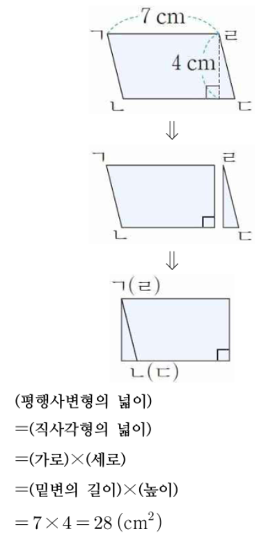 <밑변 10cm, 옆변 7cm, 높이 4cm인 평행사변형>