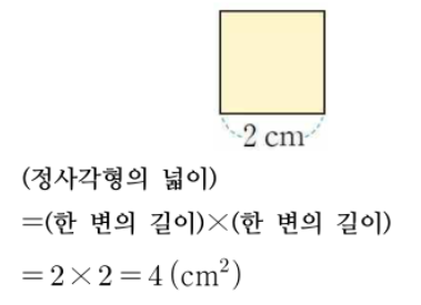 넓이: (한 변 × 한 변)