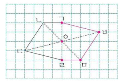 - 점대칭: “대칭의 중심은 모든 대응점 쌍의 중점이다. 도형을 중심을 기준으로 180° 회전하면 자기 자신과 겹친다.”