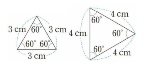 - 정삼각형: 세 변의 길이가 모두 같은 삼각형. 각의 크기도 모두 60°.