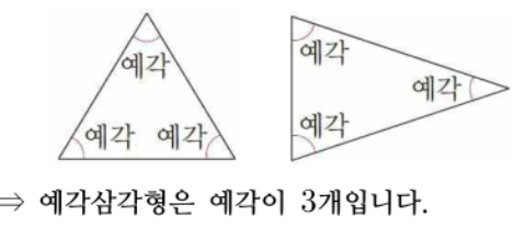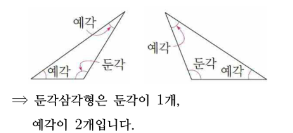 - 둔각삼각형: 한 각이 90°보다 크고 180°보다 작은 삼각형.