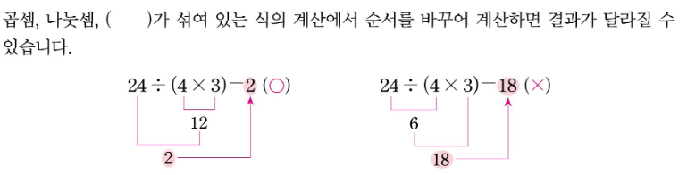 즉, 더하기(+), 빼기(−), 곱하기(×), 나누기(÷)가 한 식 안에 함께 들어 있는 것이죠.
