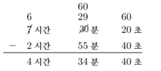 → 분이 부족하므로 1분 = 60초를 빌려오면