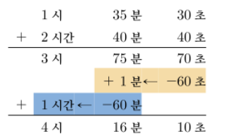시간의 덧셈은 분과 시간이 따로 계산된다는 점이 중요합니다.