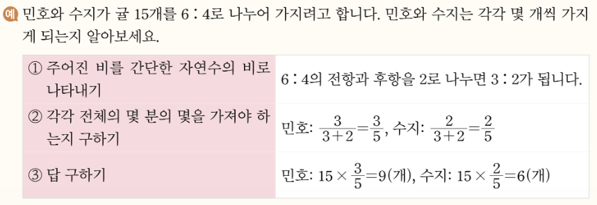 비례배분은 그 비를 이용해 어떤 양을 나누는 방법이에요.