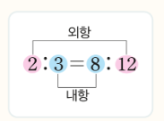 (예: 2:3 = 4:6) - 비례식의 성질: 첫째항×넷째항 = 둘째항×셋째항