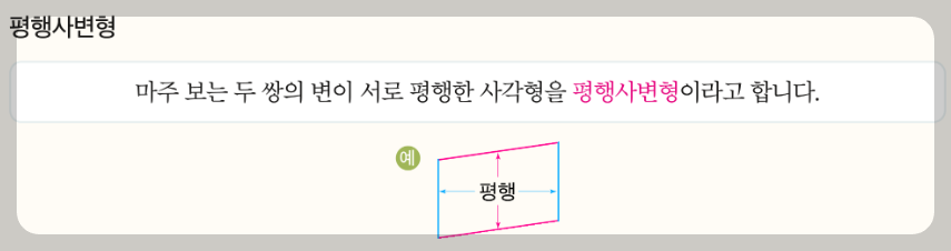 이 도형은 이름 그대로 서로 마주 보는 두 쌍의 변이 평행합니다.