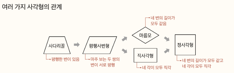 정사각형과 직사각형, 마름모와 평행사변형처럼 겉으로 비슷해 보이는 도형도