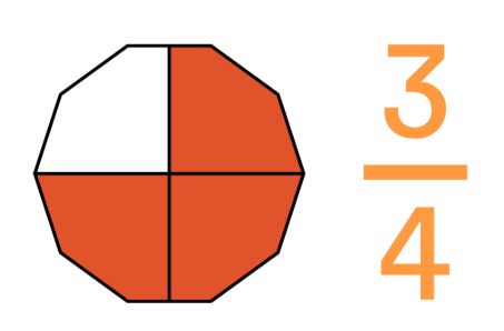 이때 색칠한 부분은 3/4(사분의 삼)입니다.
