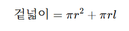 원뿔의 겉넓이는 다음 두 넓이의 합입니다.