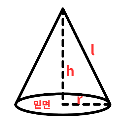 즉, 원뿔에서는 피타고라스 정리가 그대로 적용됩니다.